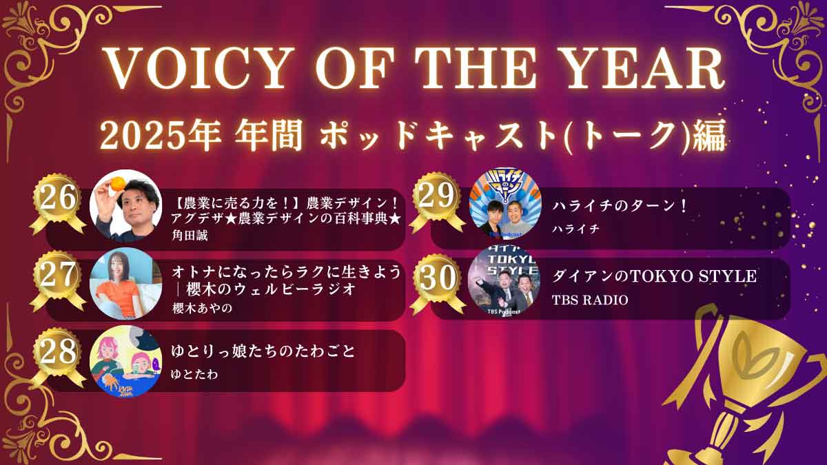 VOICY OF THE YEAR 2025(2025年 年間[ポッドキャスト(トーク)編]TOP30)に選ばれました!!