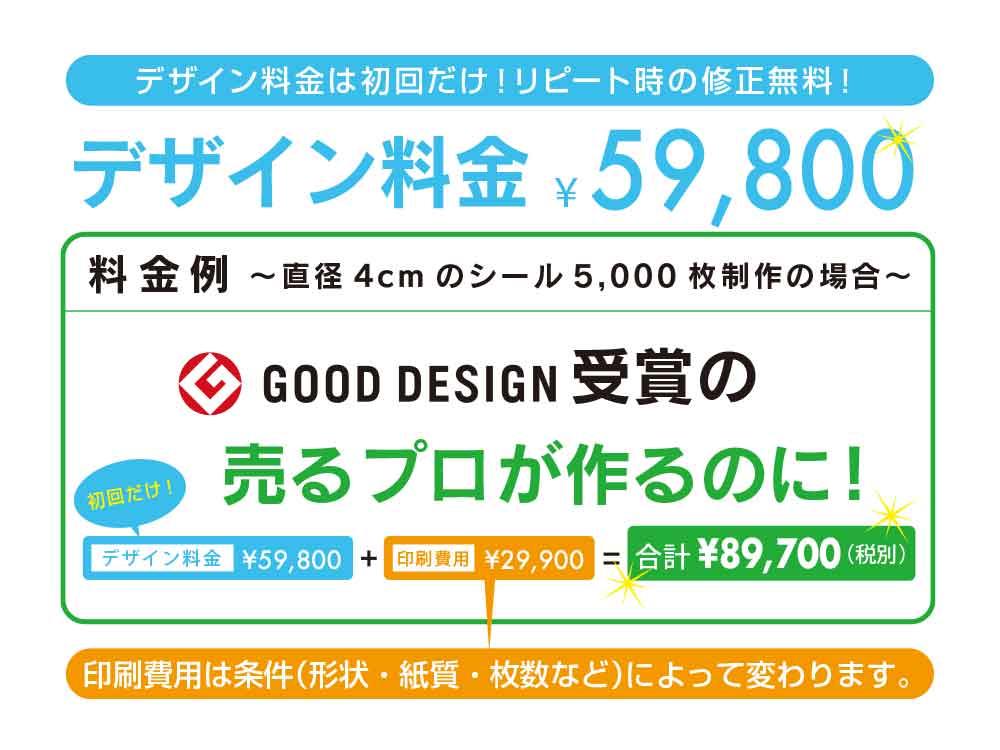 シールやラベルなどの形状・枚数により印刷費用は変わります。